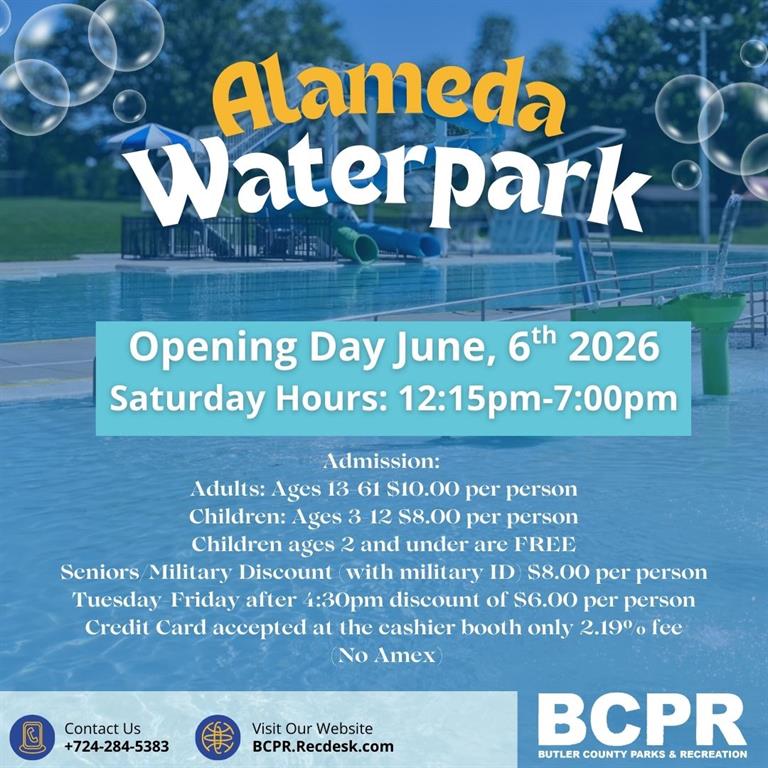 register early. The Butler County Parks and Recreation Department has a no-refund policy for all programs and rentals not cancelled by the Department; including Alameda Waterpark admissions and aquatic programs.